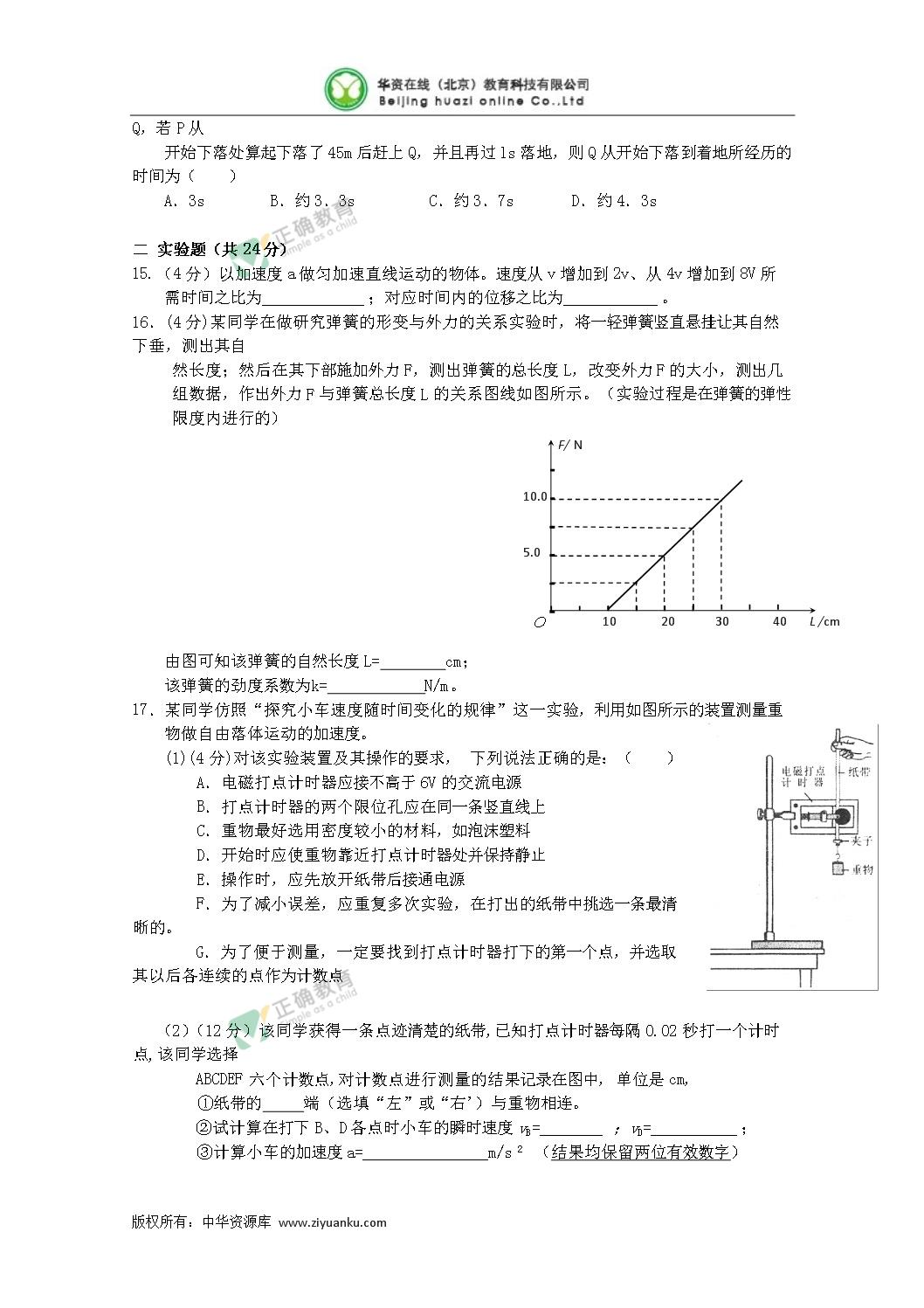 河南省洛阳强基联盟2025-2026学年高一上学期10月联考物理试卷