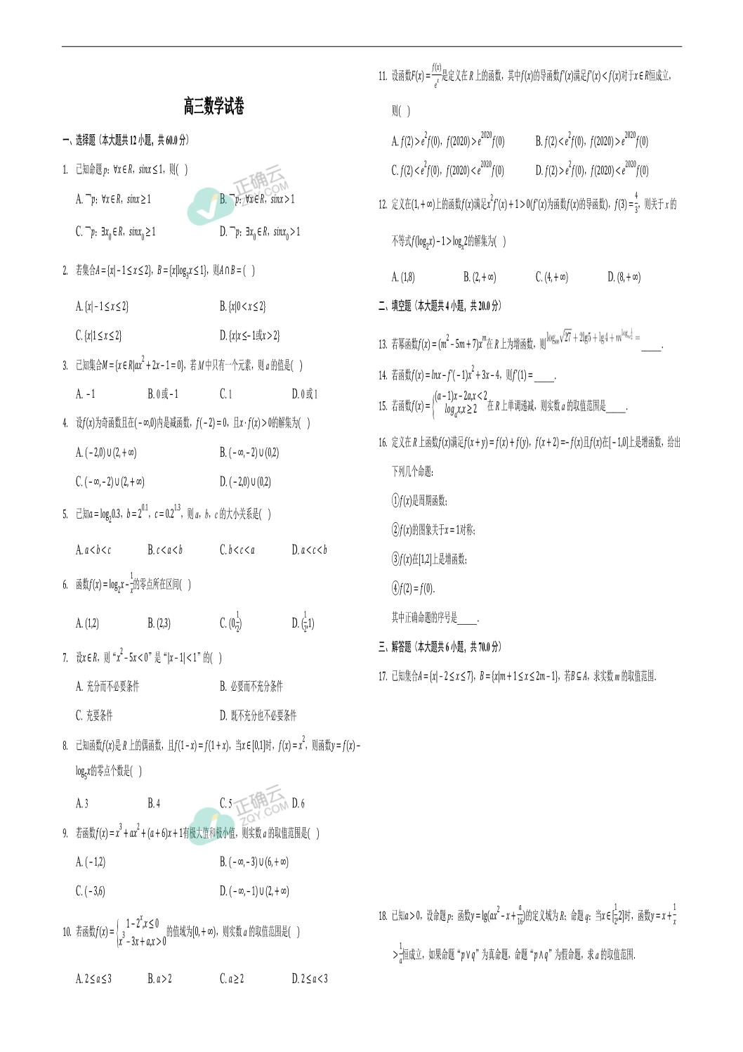 六安市独山中学2026届高三上学期10月月考数学试卷(含解析)