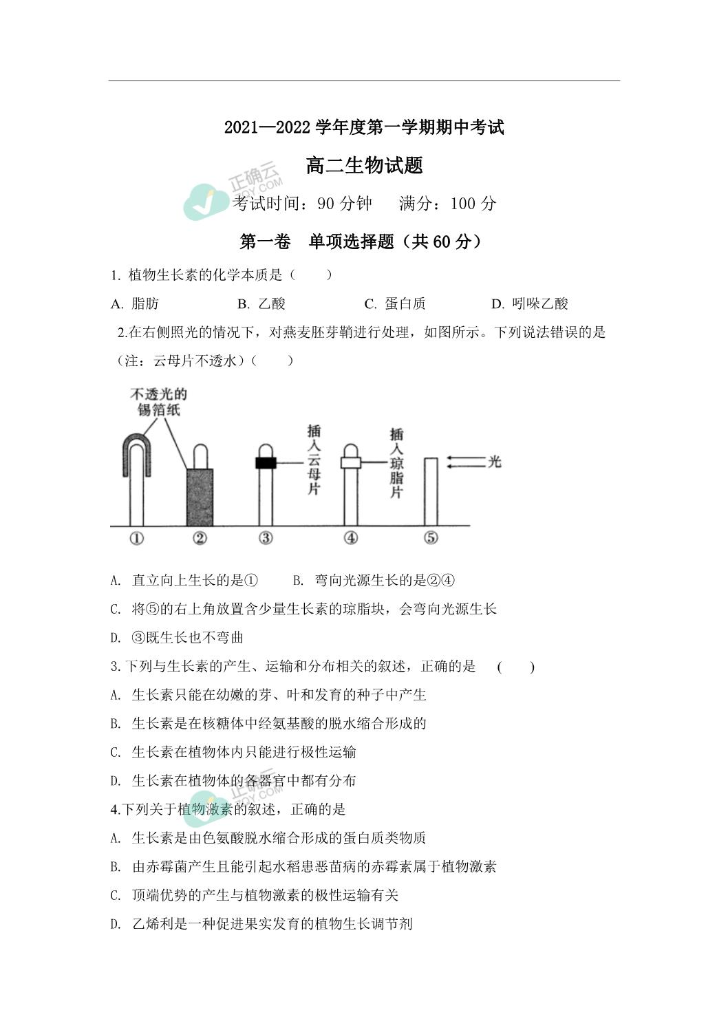 梅河口市第五中学2025-2026学年高二上学期11月期中生物试卷