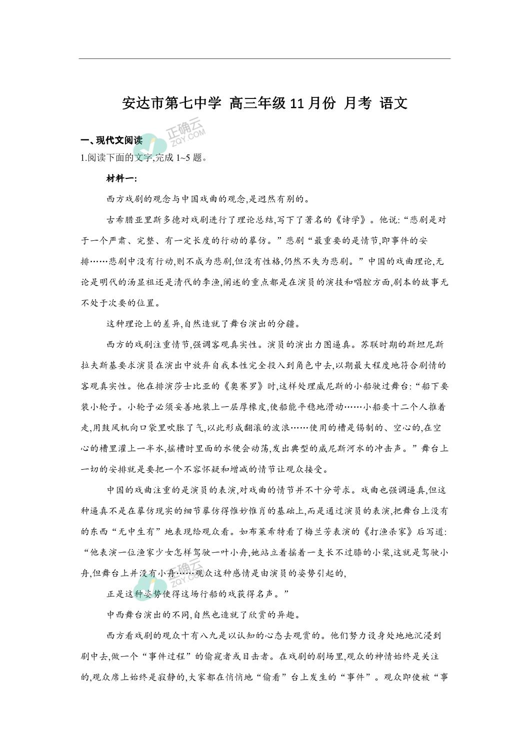 黑龙江省齐齐哈尔市2025-2026学年高一上学期10月联合考试语文试卷(无答案)