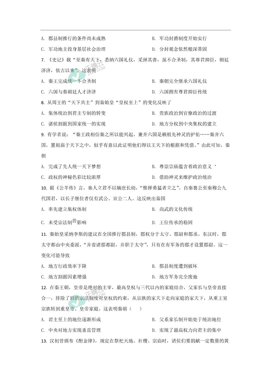 赤峰二中2025-2026学年高一上学期第一次月考历史试卷(无答案)