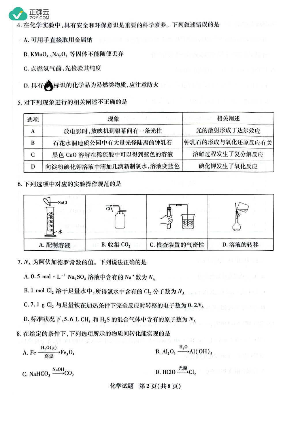 屯昌县屯昌中学2024-2025学年高一上学期期中考试化学试卷