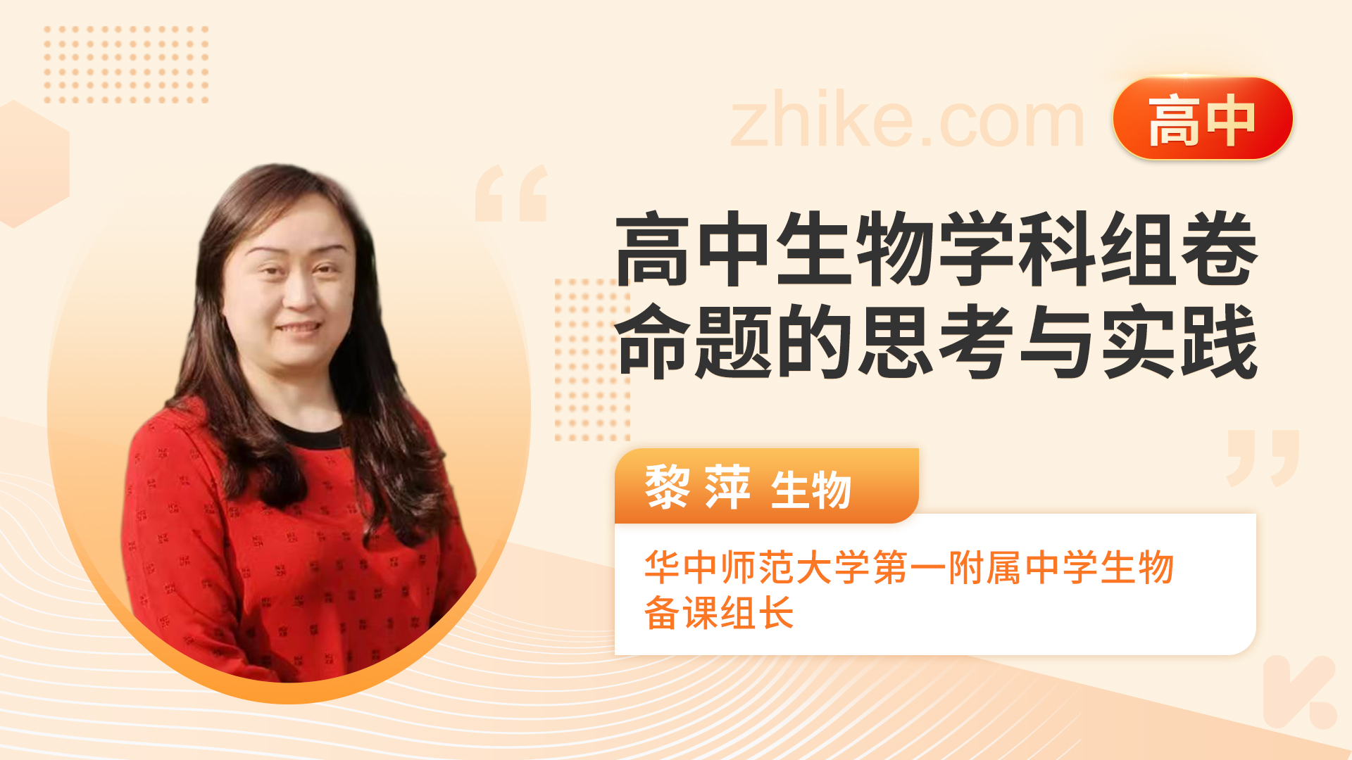 黎萍,北京师范大学教育硕士,华中师范大学第一附属中学高级教师,备课组长,华中师范大学生命科学学院校外指导教师。长期从事高中生物学科命题审题工作,参与或主持多次大型考试命审题,情境化命题市级规划课题组核心成员,武汉市命题大赛一等奖。